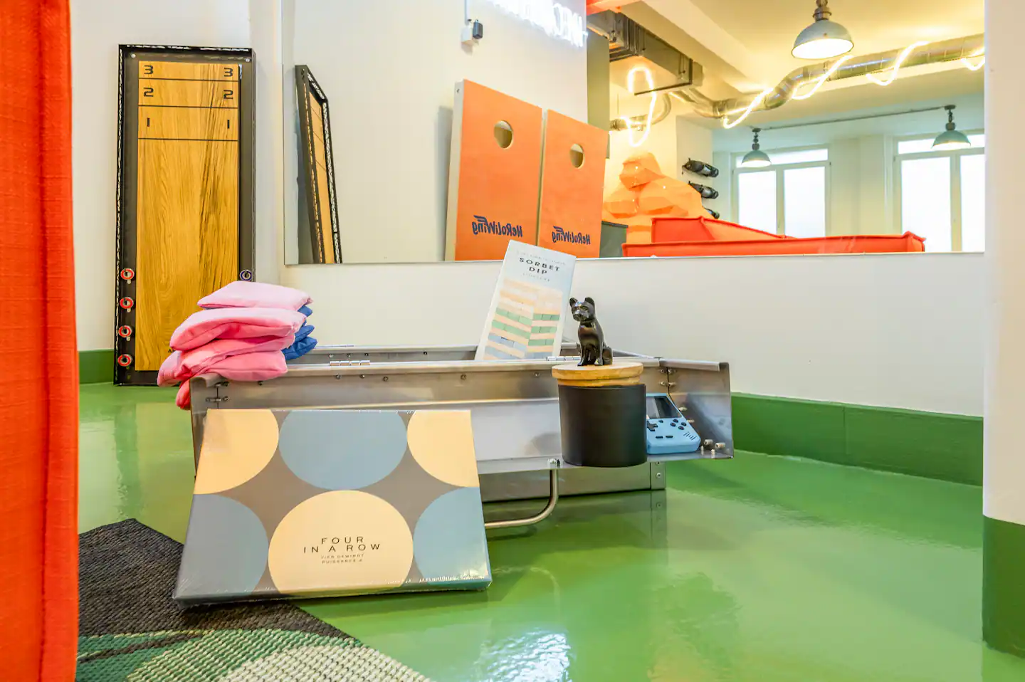 Stylisches Interior, hochwertige Betten, coole Spiele, schnelles WLAN, 86-Zoll-Smart-TV und eine große Terrasse lassen euren Aufenthalt absolut heldenhaft werden.